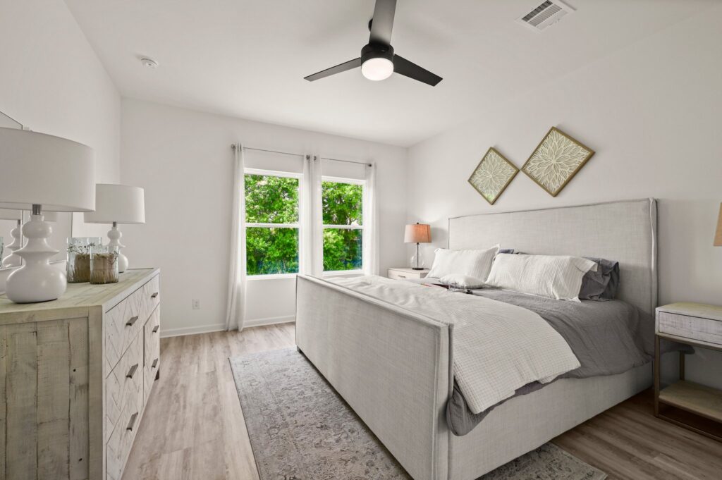 This four-bedroom, two-bathroom, two-car garage home is ideal for anyone. The open-concept floor plan allows you to easily move between the living room, dining room, and kitchen, making it perfect for entertaining guests or spending time with family. The kitchen features stainless steel equipment, a large island, and ample counter space. The spacious primary suite, which is near the kitchen, boasts a walk-in closet and an en suite. This split floorplan has two other bedrooms and shared bathroom access in the front of the house.