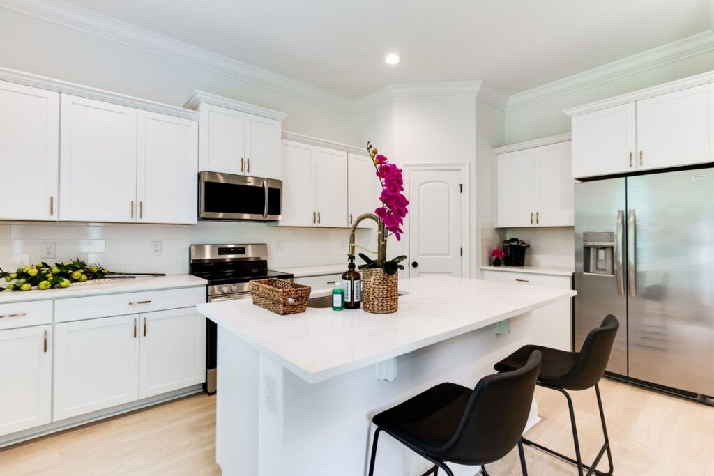 Step into this one of a kind, beautiful new construction home. In addition to the quartz countertops, there are white cabinets with gold hardware throughout the home. This Domenico floor plan features 4 bedrooms, 3 baths, with a large laundry room. The living area opens to the dining room with the kitchen tucked around to the side.