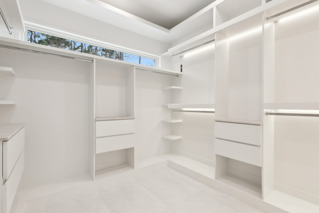 Elegant Owner’s Spa, custom designed Owner’s Closet, bespoke finish selections