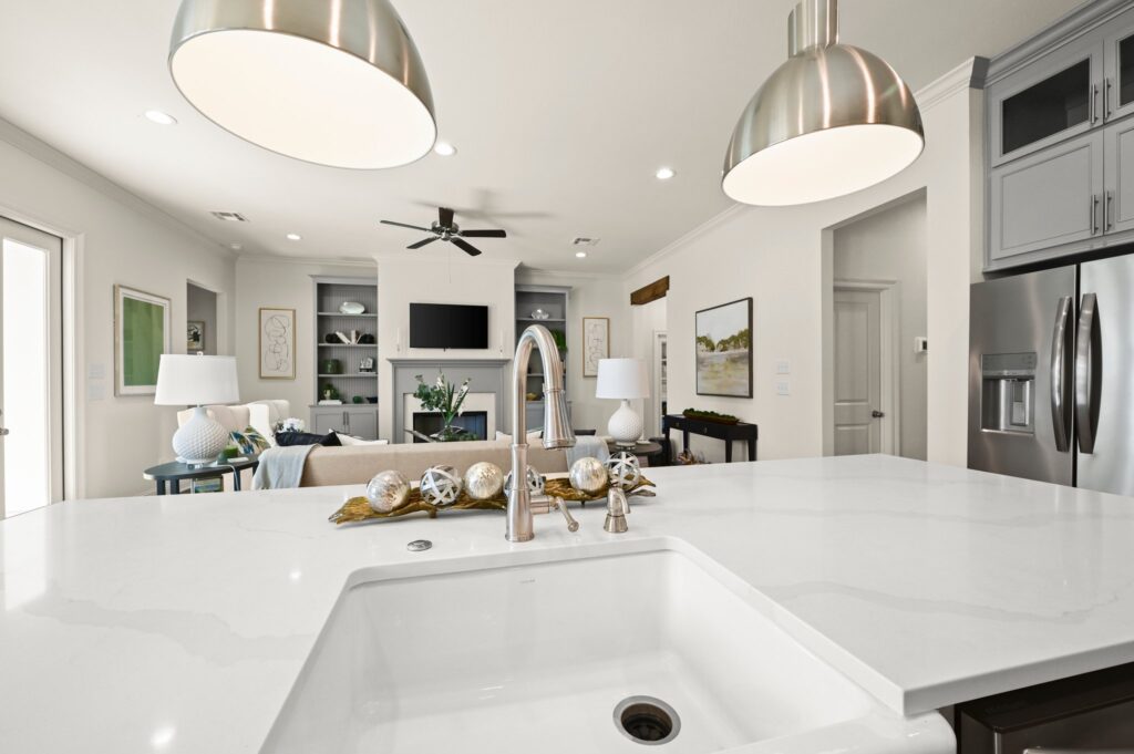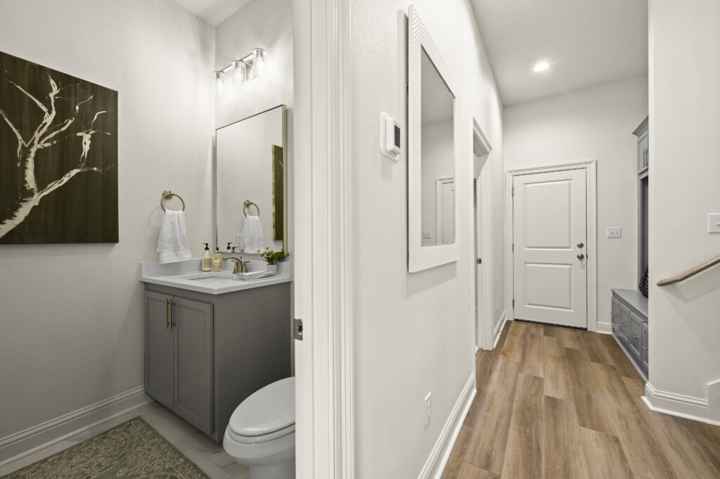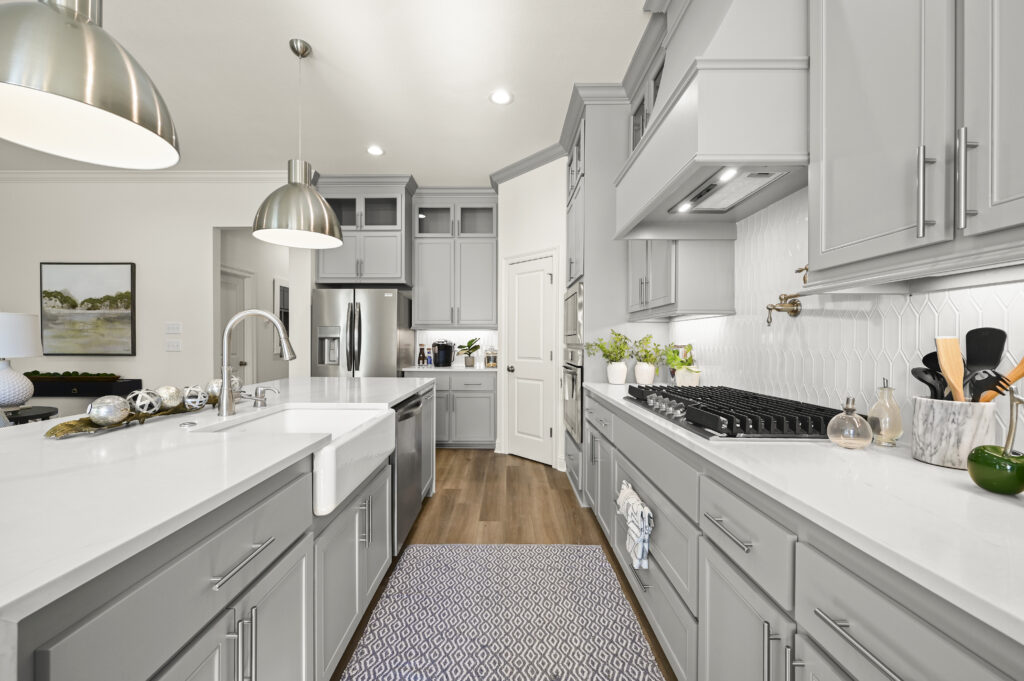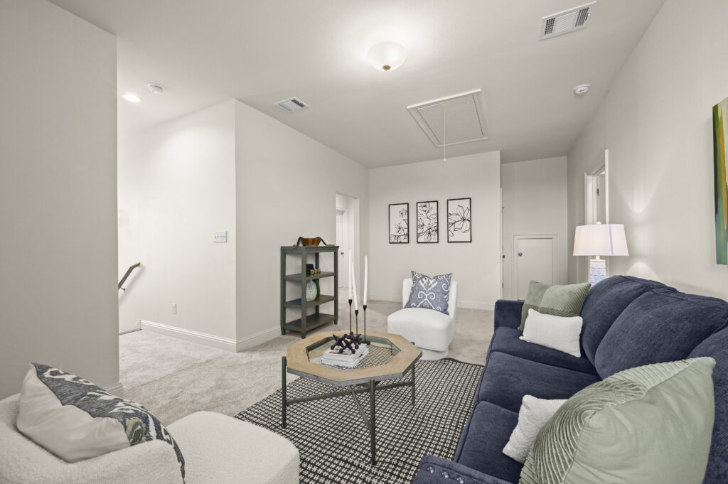 The “Burnside” floor plan in Atwater Reserve is over 2600 sq feet of living space. This is a two story home with four bedrooms, three and half baths, an office/ flex space as well as a huge loft/bonus suite. You will enter home from the foyer which leads you into the open living, kitchen and dining room. Upstairs features three full beds, two full baths and the spacious loft area. Very custom throughout with Quartz counter surfaces, wood stair case, custom painted cabinets, custom built-ins, upgrading lighting throughout and stainless appliances.Â