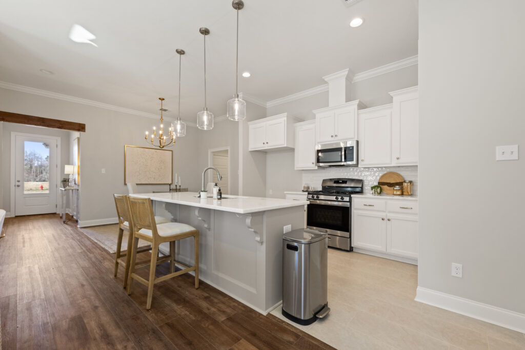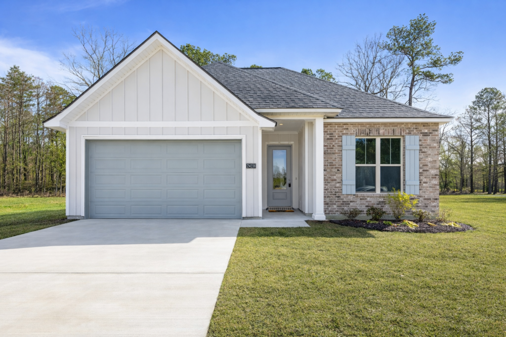 Discover the charm of Eagles Gate, a thoughtfully designed community located just off Brown Road in Denham Springs and conveniently situated next to Juban Parc Elementary and Junior High. The Rosette Farmhouse floorplan features a functional open split layout with 4 bedrooms and 2 full baths, highlighted by a stunning tongue-and-groove coffered tray ceiling with gypsum beams in the living area. The chef-inspired kitchen includes a spacious island with pendant lighting, GE stainless steel appliances, a gas range, 3cm granite countertops, custom cabinetry, and a walk-in pantry. Interior finishes feature luxury vinyl plank flooring in the main living areas and secondary bedrooms, tile in wet spaces, while the primary suite offers a spa-like bath with a custom-tiled shower. Exterior highlights include a Red Grandis wood front door, architectural shingles, professional landscaping, and the efficiency of a tankless water heater.