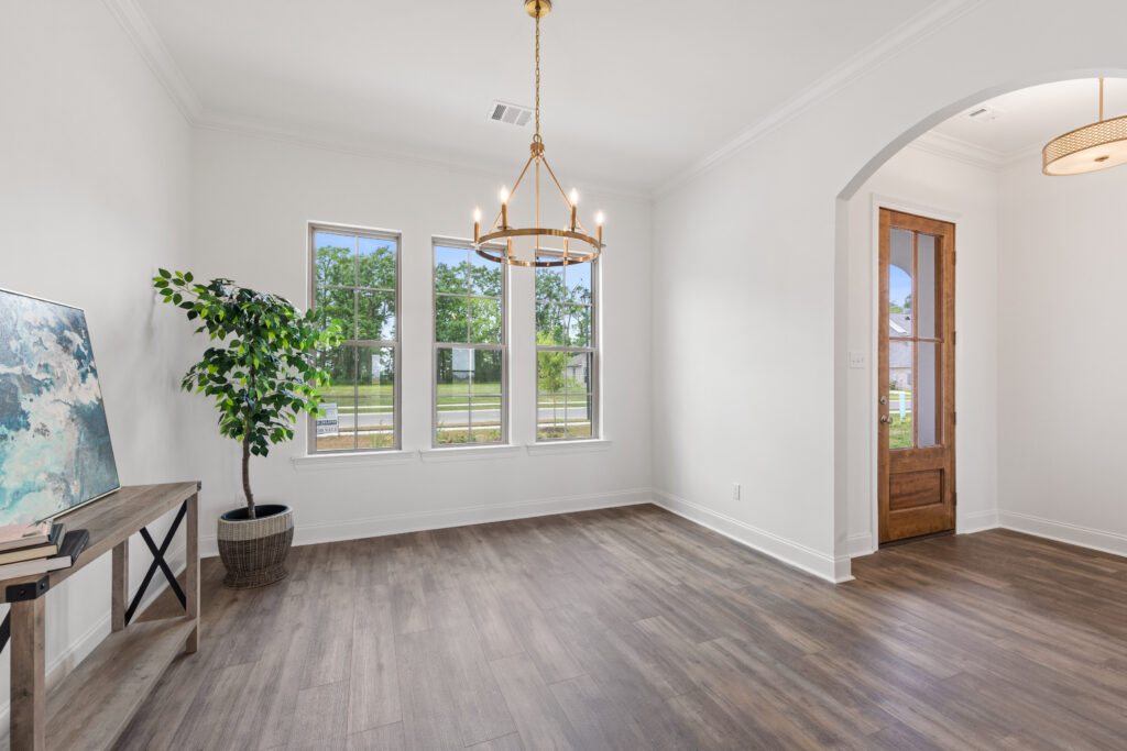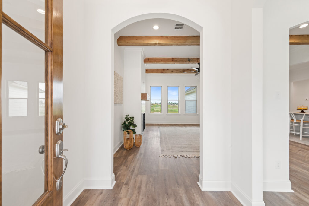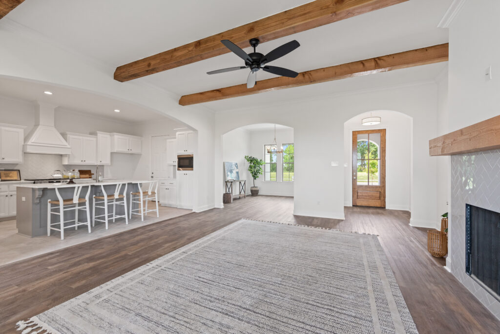 The Celeste Heritage I floorplan is thoughtfully designed for entertaining, featuring 3 bedrooms, 2 full baths, and an open-concept layout that maximizes both space and functionality. The spacious living area boasts elegant wood-boxed beam details and a designated dining area, creating a warm and inviting ambiance.